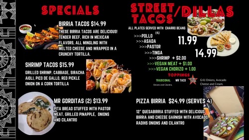 The menu leans heavily into classic street-style Mexican comfort food, and that’s where this place really shines. Tacos are the obvious centerpiece, served on warm tortillas with generous fillings that range from seasoned carne asada and tender barbacoa to flavorful chicken and al pastor. The portions feel fair for the price, and everything arrives fresh and well-prepared. One visit included a plate of carne asada tacos topped with cilantro and onion, paired with a squeeze of lime and a house salsa that brought just enough heat without overpowering the meat. It’s the kind of simple combination that reminds you how good straightforward ingredients can be when they’re handled properly.