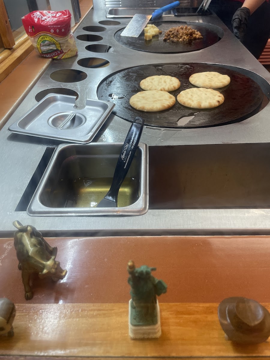 Carne asada (beef), pastor (pork), pollo (chicken), paired with melted cheese in a flour tortilla. Served with salsa and sour cream. Vegan options: plant based chorizo C.P.A. (Cheese, pico, avocado).